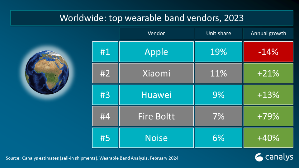 相比之下,根底手表商场展现出微弱的增加潜力,成为仅有完成增加的细分商场,同比增加达25%。其增加由多个要素一起推动。首要,亚太区域,特别是印度,坚持着微弱的开展势头,推动根底手表的遍及。根底手表因其高性价比的产品优势活泼于新式商场,突显出可穿戴腕带设备仍有巨大的开展潜力。